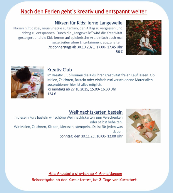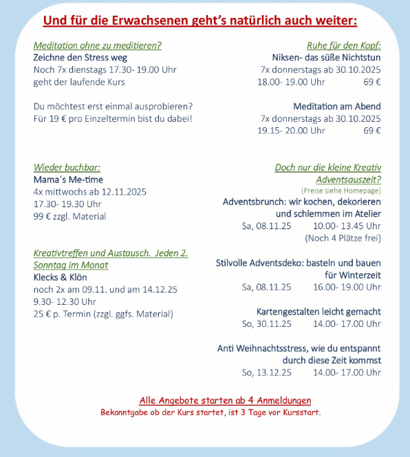 Auf dieser Seite können Sie sich über alle Angebote des Atelier Buntes Treiben informieren.