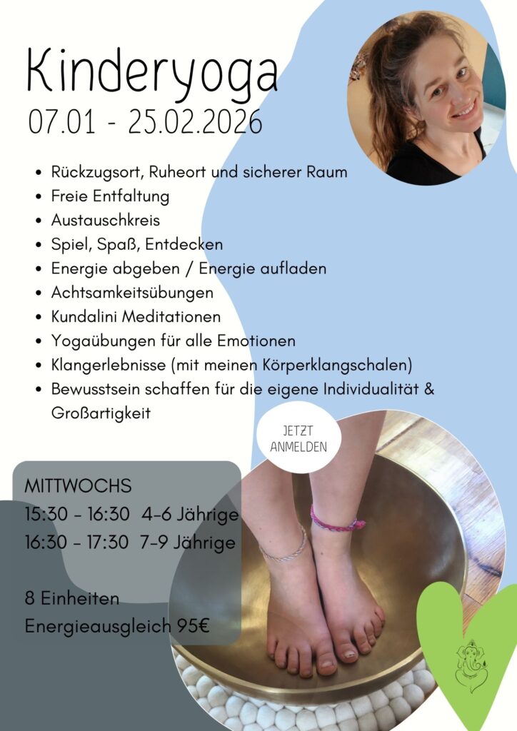 Durch meine Kinder-Yogakurse verbessert sich neben der Körperwahrnehmung auch der Umgang mit Emotionen und die Konzentration beim Lernen.
