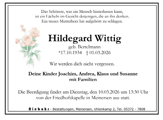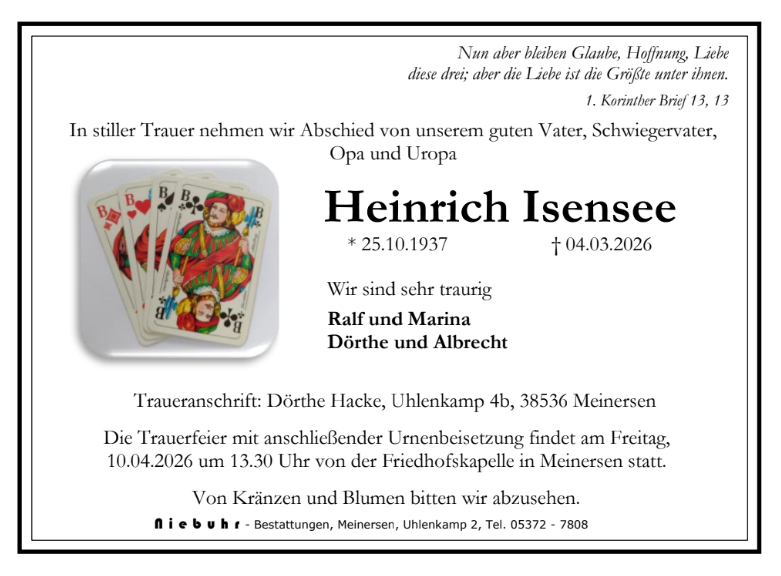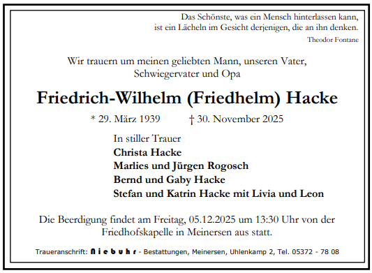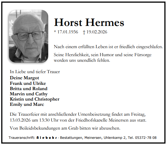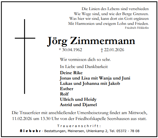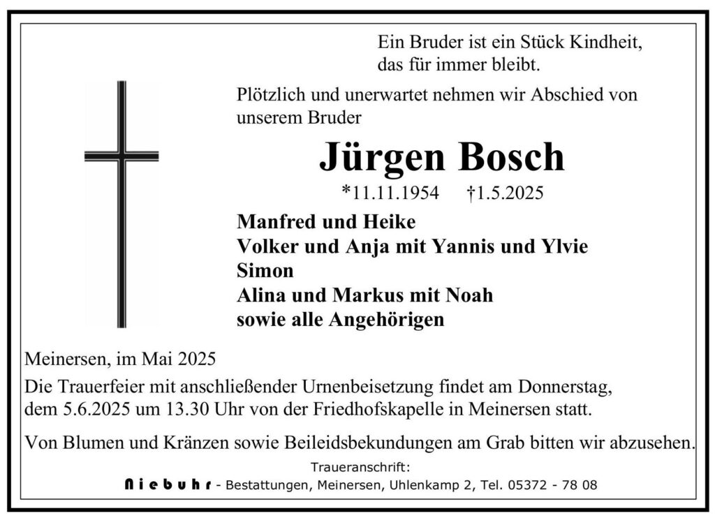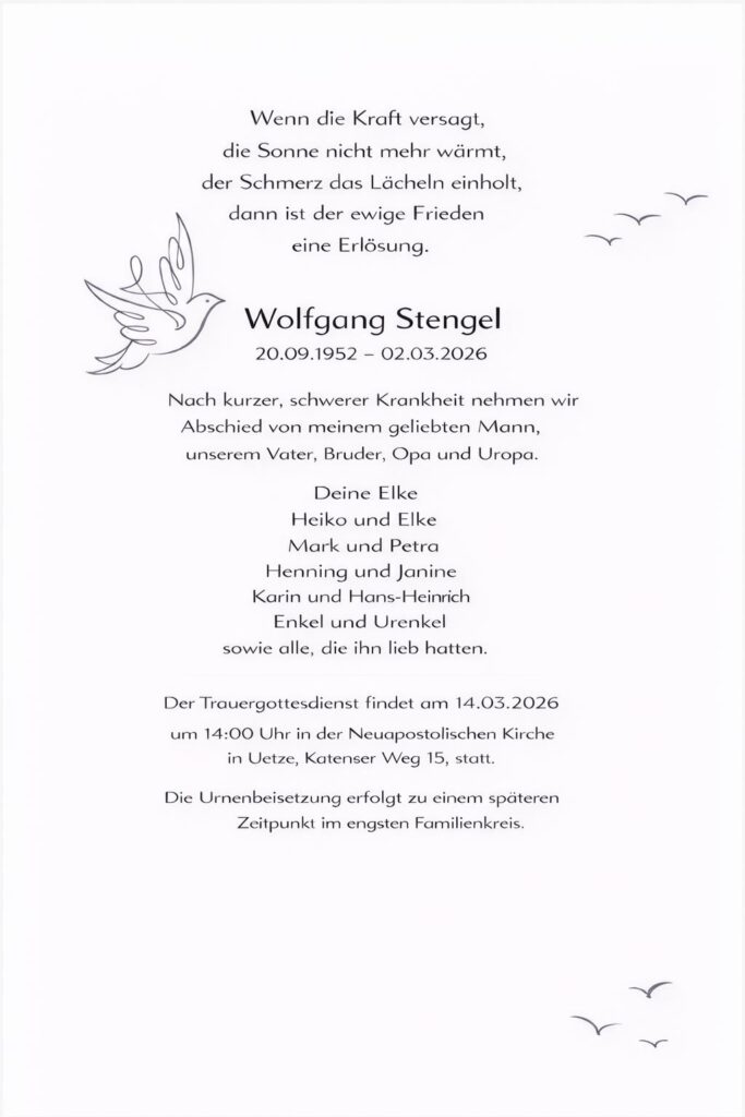 Mit diesen Anzeigen möchten wir Ihnen einen würdevollen Platz des Erinnerns geben und den Angehörigen die Möglichkeit bieten, ihre Trauer mit der Öffentlichkeit zu teilen.