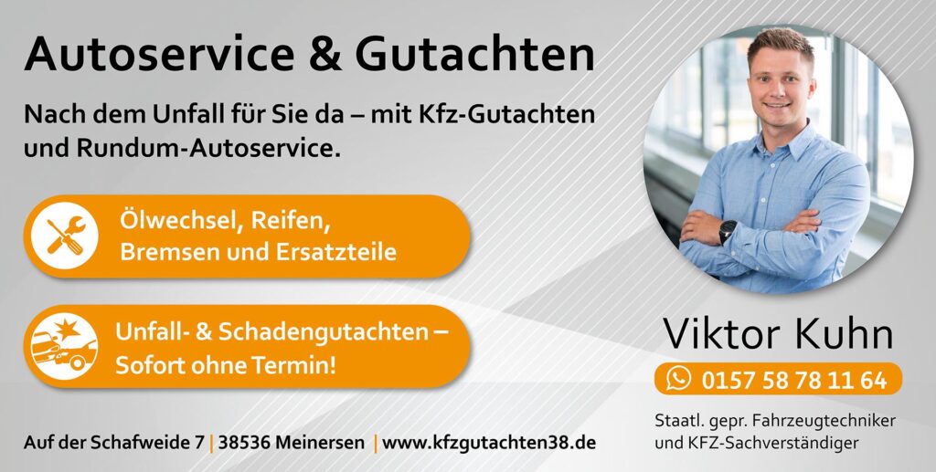 Wir sind Ihr Kfz-Gutachter in Meinersen, Gifhorn, Braunschweig, Wolfsburg, Celle, Hannover, Peine und den umliegenden Regionen.