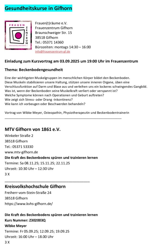 Ich biete ein umfangreiches Kursangebot eigenständig oder in Kooperation mit verschieden Anbietern an.