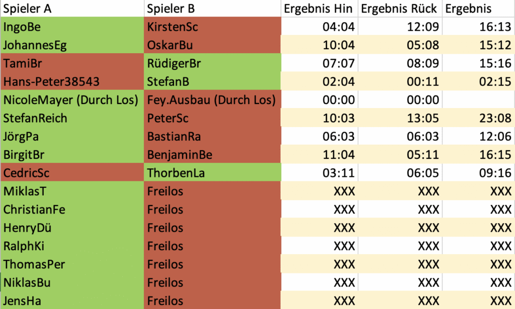 Alle Spieler mit grüner Markierung sind in der 2. Runde.