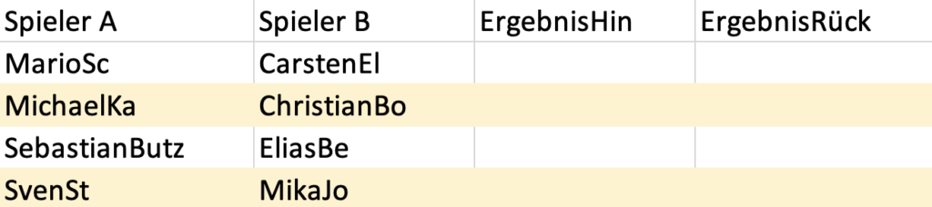 Hier die Paarungen: