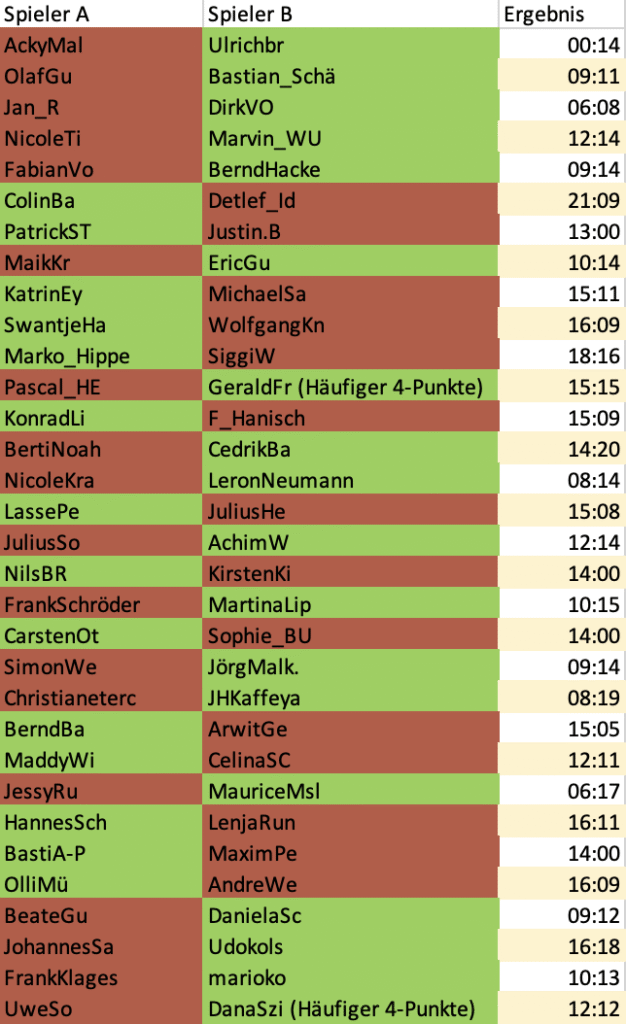 Die Ergebnisse der 2. Runde im Meinersen - Pokal!