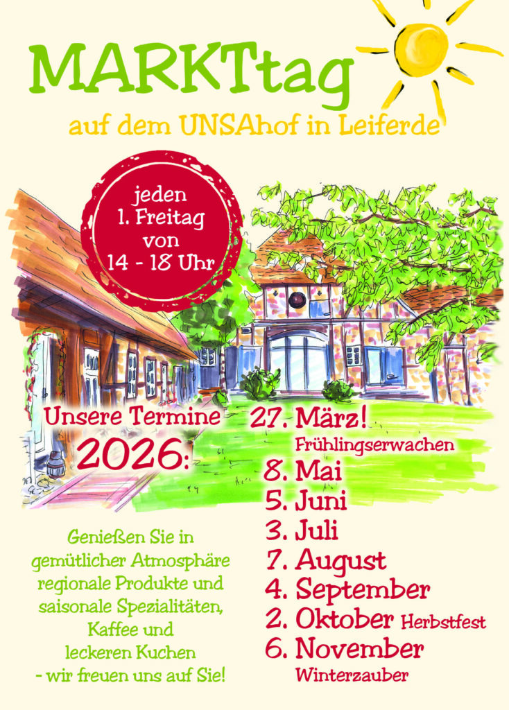 Wie gewohnt finden die Markttage an jedem ersten Freitag im Monat von 14:00 – 18:00 Uhr statt.